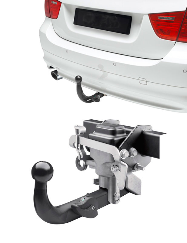 Los enganches desmontables Thule de la serie BM permanecen ocultos cuando no se utilizan. La bola se coloca y se desmonta con una sola mano, el sistema es totalmente seguro y no perjudica al diseño del vehículo. Sistema equipado con protección antirobo.